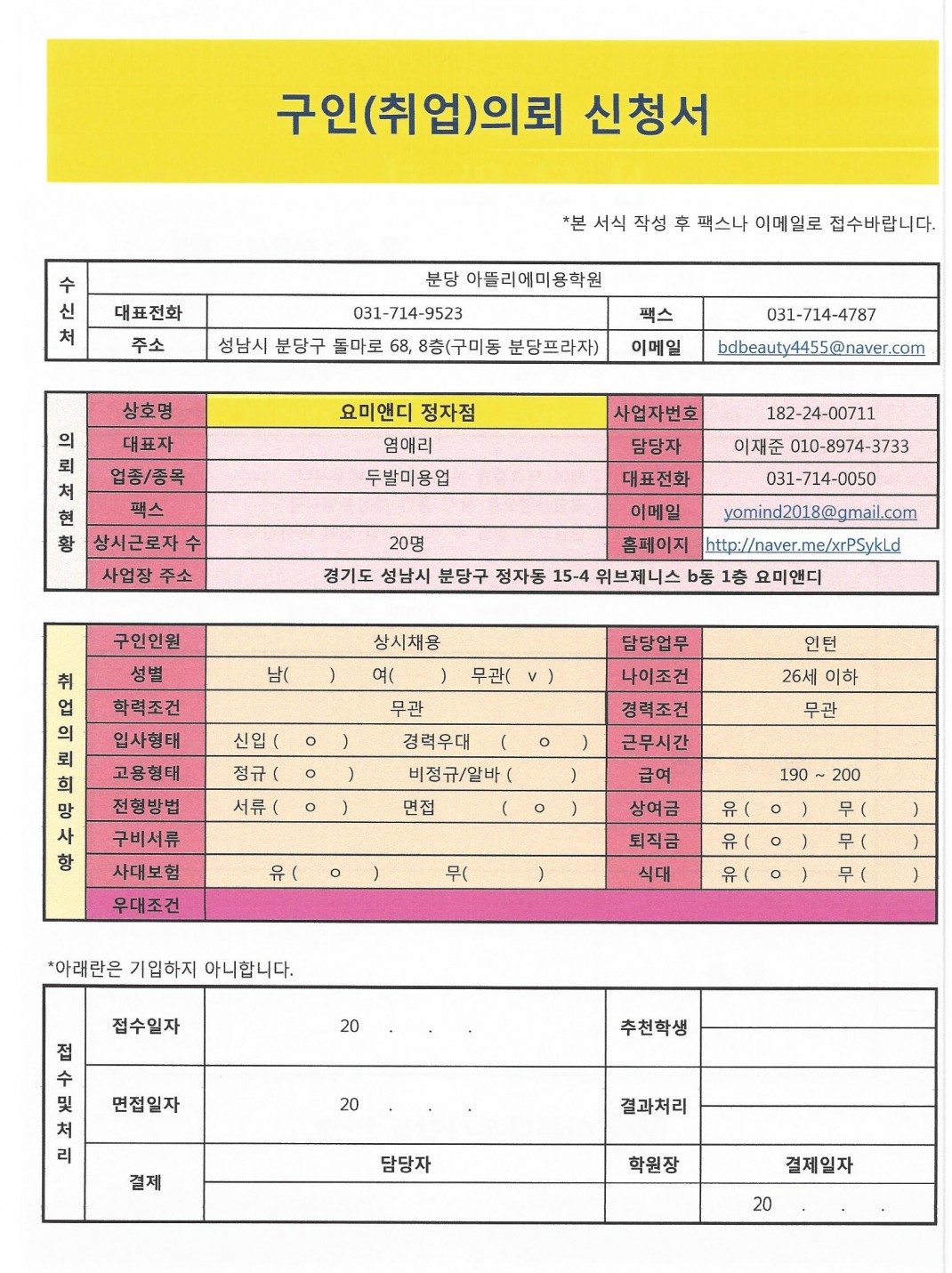 요미앤디 헤어 직원 모집합니다 > 취업정보